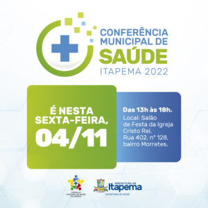 03/11/22 – O Conselho Municipal de Saúde e a Secretaria de Saúde, realizam sexta-feira (04/11), a 7ª Conferência Municipal de Saúde. O evento acontece no Salão de Festa da Paróquia Cristo Rei (localizada na Rua 402, nº128, Bairro Morretes), a partir das 13h.