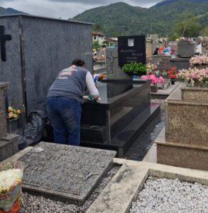 “Essa é uma ação que a gente faz, mas que precisa da colaboração da população. Pedimos que as famílias evitem deixar vasos com água nos túmulos e mantenham os espaços sempre limpos e secos”, reforçou a diretora de Vigilância Epidemiológica, Bruna Bressanini.