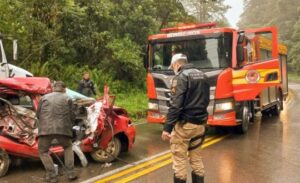 Um acidente entre três veículos deixou uma mulher morta na rodovia SC-418 em Campo Alegre no último sábado (29). O acidente foi entre um carro, um caminhão e uma moto. A vítima foi a passageira do carro.