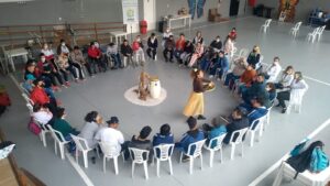 Todos os cerca de 100 alunos da unidade participaram das oficinas, baseadas em exercícios de estímulos cognitivos e de criatividade, abordando o registro de expressões por meio da palavra escrita ou falada e sons. A vivência envolvendo a contação de histórias tem o objetivo de estimular e sensibilizar os participantes, criando condições para que eles desenvolvam as suas próprias narrativas e contem suas histórias a partir de uma perspectiva própria e original.