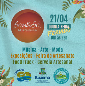 Itapema comemora 60 anos e dentre as programações que já acontecem ao longo do mês de abril está o Projeto Som&Sol – Música na Rua. O evento será na próxima quinta-feira (21/04), dia do aniversário da cidade na Praça da Paz, das 10h às 22h, com muita arte, exposições, música e diversão para todas as idades.