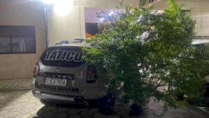 Uma planta usada para produzir maconha foi encontrada pela Polícia Militar em Tubarão, Sul de Santa Catarina. O pé de maconha era maior do que a viatura dos policiais e foi apreendida em uma casa na cidade, segundo o g1 SC.