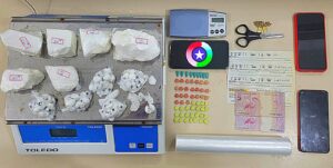 Ao adentrar no local, foi possível flagrar em cima da mesa da cozinha 58 comprimidos de ECSTASY, que o homem assumiu ser proprietário e alega ser usuário, porém acabou admitindo que também vende para seus amigos em algumas baladas, indagado ainda acerca da entrega que fez para a adolescente o mesmo afirmou que a sua companheira pediu para que este fosse até o local pois ela estava cansada de ir pedalando e já tinha ido muitas vezes repor a droga e não poderia sair no momento pois estava cuidando dos filhos menores de idade.