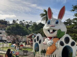 Nova Trento, 18.04.2022 – Não teve quem passasse pelo centro da cidade de Nova Trento e não avistasse, já de longe, a escultura gigante do coelho que atraiu todas as atenções na La Terza Pasqualina, evento de Páscoa realizado pelo terceiro ano no município e que encerrou neste domingo, 17.