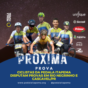 20/04/23 – Ciclistas da Pedala Itapema, estarão disputando entre os dias 21 e 23 de abril, em Rio Negrinho e Cascavel, no Paraná, provas de Cross Country Olímpico e Estrada.