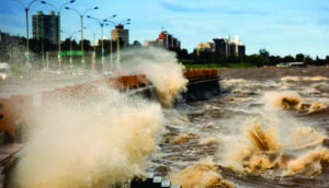 O Sul e o Leste do Uruguai foram colocados em alerta laranja por vento de até 130 km/h pelo Instituto Uruguaio de Meteorologia. A MetSul e o Inumet alertaram que os departamentos de Rocha e Maldonado devem ser os mais castigados pelo vento hoje. As rajadas se aproximavam de 100 km/h na manhã de hoje em Punta del Este e o vento intenso levou muita espuma do mar para a orla na cidade e no balneário vizinho de Piriápolis.