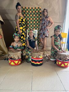 19/11/25 – A atividade nasceu de um projeto de contação de histórias conduzido pela professora Claudete de Oliveira, que criou o mini livro ”A menina e o tecido das cores”. A história apresenta Abayomi, uma menina que descobre no tecido a beleza das cores, da amizade e da cultura de sua aldeia.Na história, Abayomi descobre um tecido com as cores laranja, preto e verde, cada uma com um significado especial: alegria, força e esperança. Esses valores representam muito da história e da resistência do povo negro. Ao criar sua saia e seu turbante, Abayomi demonstra orgulho de sua identidade e de suas raízes. Ela entende que a beleza não está apenas nas roupas, mas no que carregamos dentro do coração, como a cultura, os costumes, a família, a música, a dança e a união da comunidade.