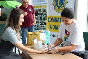 Nesta quinta-feira (14/11) é celebrado o Dia Mundial do Diabetes. A Secretaria de Saúde em parceria com o Lions Clube e o Sicred realizou uma ação especial. Quem esteve na agência do Bairro Meia Praia pôde aferir a pressão arterial e medir o nível de glicemia no sangue, além de receber orientação sobre os cuidados com a saúde.