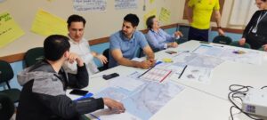 Durante a oficina, os moradores conheceram o diagnóstico elaborado pelas equipes técnicas da Prefeitura e da consultoria URBTEC™. Por meio de dinâmicas interativas, com mapas e outros materiais de apoio, os participantes contribuíram com ideias relacionadas a temas como trânsito, sinalização, calçadas, ciclovias, acessibilidade, transporte coletivo, entre outros aspectos abordados pelo Plano.