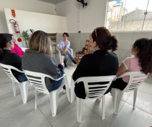 25/08/22 – A programação do Agosto Lilás continua em Itapema. Nesta quinta-feira (25/08) foi realizada uma roda de conversa sobre o tema com as usuárias do CREAS. A atividade foi conduzida pela presidente do Instituto Inarru, Simone Silva, que apresentou um panorama das lutas das mulheres na história e as formas de violência.