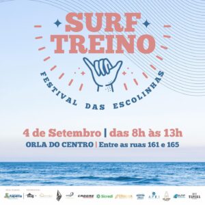 31/08/22 – A Secretaria de Esportes realiza neste domingo (04/09) o Surf Treino. O evento é destinado aos alunos participantes das escolinhas de surf do Centro e da Meia Praia. A atividade será na Orla do Centro, entre as ruas 161 e 165, das 8h às 13h.