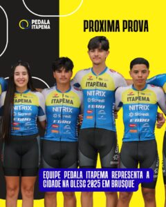 05/11/25 – A equipe Pedala Itapema inicia, nesta quarta-feira (05), sua participação no ciclismo da Olimpíada Estudantil Catarinense (OLESC), que acontece em Brusque entre os dias 5 e 8 de novembro de 2025. A competição é organizada pelo Governo do Estado de Santa Catarina, por meio da Fundação Catarinense de Esporte (FESPORTE), em parceria com a Prefeitura Municipal de Brusque.Com o apoio da Secretaria de Esporte da Prefeitura de Itapema, os atletas estão preparados para representar a cidade em quatro disciplinas do ciclismo ao longo do evento. A estreia acontece hoje, às 9h, na prova de Team Relay, realizada na Pista do Tatu.