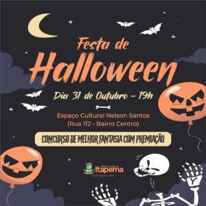 27/10/22 – Na próxima segunda-feira (31/10) tem programação especial no Espaço Cultural Nelson Santos, no Bairro Centro. A Festa de Halloween promete muita alegria, diversão e o tradicional concurso de fantasias, a partir das 19h.“Chegou a hora de colocar a criatividade em prática e ousar na fantasia. A Festa de Halloween será mais um momento de muita diversão e alegria para toda a família”, destacou a Secretária de Cultura, Gabriela Nascimento.