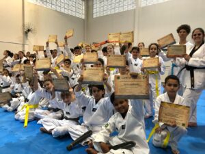 o Ginásio de Esportes foi palco do Exame de Troca de Faixa do taekwondo. A solenidade contou com a presença de mais de 93 famílias que puderam prestigiar a ascensão dos nossos atletas.