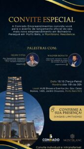 17/10/22 – O município de Porto Belo e toda a região ganham, no próximo dia 18 de outubro, o Montblanc Residence, uma grande obra de alto padrão que tem a assinatura da CONRADO Empreendimentos. A construtora paranaense chega a Santa Catarina com expertise de grandes empreendimentos no estado vizinho e já anuncia que até o final do ano terá ainda outras sete obras em fase de elaboração. Para marcar esse momento histórico, a Conrado Empreendimentos realizará um grande lançamento, a partir das 18h, no HUB Shows e Eventos, localizado na avenida Governador Celso Ramos, 1499, Jardim Dourado, em Porto Belo. O evento será exclusivo para autoridades, corretores e convidados.