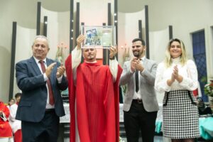 Durante a celebração, padre Elizandro Scarsi ressaltou a importância do legislativo para a conquista. “Quero agradecer aos vereadores do nosso município que aprovaram uma lei que foi apresentada pelo vereador Cláudio, mas, se os outros não tivessem aprovado, não teria ido pra frente. Então agradecemos a todos os vereadores, ao Cláudio que teve a iniciativa de levar esse projeto da nossa Festa do Divino. Somos muito agradecidos. Vocês não estão fazendo para a igreja católica isso, vocês estão fazendo para o município”, salientou.