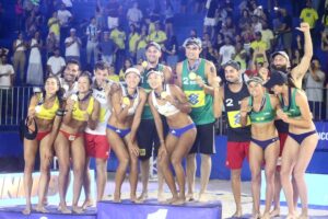 10/04/23 – A Etapa Challenge do Circuito Mundial de Vôlei de Praia em Itapema encerrou neste domingo (10/04) com duplas brasileiras no pódio. No masculino, André e George venceram os franceses Krou/Gauthier-Rat por 2 sets a 0 (21/16 e 21/13) e foram os campeões da etapa. Na disputa feminina, Bárbara Seixas e Carol Solberg conquistaram a medalha de prata, superadas pela dupla chinesa Xue/Xia por 2 a 0 (21/18 e 21/17).
