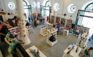 Cedido à FCC, o espaço conta com produtos de cerca de 70 expositores de todas as regiões do Estado, resultando em aproximadamente 3,7 mil peças. São comercializadas mais de 35 mil artigos em madeira, gesso, palha, cerâmica, tapeçarias, bonecos, rendas e bordados, entre outros materiais e técnicas.