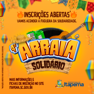 A Prefeitura de Itapema, por meio da Secretaria de Turismo e Desenvolvimento Econômico abriu nesta quarta-feira (15/06) as inscrições para o 4º Arraiá Solidário. O evento acontecerá no dia 30 de julho, na Praça da Paz, a partir das 12h.