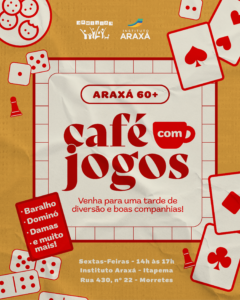 “O Araxá 60+ Café com Jogos será um espaço de integração, afeto e lazer, onde os participantes terão a oportunidade de fortalecer vínculos, exercitar a mente e se divertir em um ambiente seguro e receptivo. Reforçamos para que familiares, amigos e vizinhos incentivem a participação dos idosos no projeto, contribuindo para uma rotina mais ativa e saudável para todos” afirma Diego Cabalheiro, presidente do Instituto Araxá.