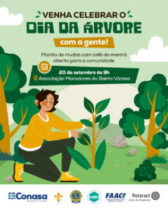 16/09/25 – A Fundação Ambiental Área Costeira de Itapema (FAACI), em parceria com a Conasa Águas de Itapema, o Lions Club, a Associação de Moradores do Bairro Várzea e o Grupo Escoteiros Tapera dos Carijós, realiza neste sábado (20) uma ação especial em alusão ao Dia da Árvore.