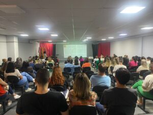 19/11/25 – A Secretaria de Educação de Itapema reuniu, nesta quarta-feira (19), professores e profissionais da rede municipal no 1º Seminário de Educação para as Relações Étnico-Raciais, realizado no Centro de Contraturno Novos Caminhos. O encontro integra o Plano Municipal de Ações e Metas para implementação da Lei 10.639, que estabelece o ensino de história e cultura afro-brasileira e africana nas escolas, fortalecendo iniciativas de formação, revisão curricular e promoção da diversidade.A abertura contou com a participação da Agente de Governança Regional, Milena Rosa Senhorinha, que trouxe reflexões sobre equidade, identidade e o papel das redes de ensino na construção de práticas pedagógicas mais inclusivas. Segundo ela, “discutir a Lei 10.639 é reafirmar que a escola tem um papel central na valorização da história e da cultura afro-brasileira. Quando garantimos esse conteúdo no cotidiano escolar, contribuímos para formar cidadãos mais conscientes, críticos e respeitosos com a diversidade”.