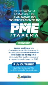 Durante a conferência, serão apresentadas à comunidade as metas estabelecidas na criação do plano, bem como os avanços alcançados e os desafios ainda existentes. É importante destacar que o PME envolve todas as redes de ensino do município (municipal, estadual e privada) e tem como objetivo comum garantir a melhoria da educação em Itapema.