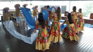 Após, o grupo esteve no bairro Canto da Praia onde apreciaram, em um restaurante local de frente pro mar, um almoço regional à base de frutos do mar. O grupo de dança itapemense ‘Tropeiros do Litoral’ realizou uma apresentação que ilustrava a vida dos pescadores artesanais.