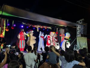 11/12/25 – O Bairro Morretes viveu uma noite especial nesta quarta-feira (10/12) com mais uma apresentação do Caminhão-Palco Itinerante do Feliz Natal Itapema. A iniciativa, realizada pelo Ministério da Cultura por meio da Lei Federal de Incentivo à Cultura (Lei Rouanet), conta com patrocínio dos Supermercados Koch, produção cultural da PK Produções e apoio da Prefeitura de Itapema, levando música, alegria e espírito natalino diretamente às comunidades.Famílias e crianças lotaram a rua para acompanhar o espetáculo, que uniu arte, performance e momentos emocionantes. O “Comboio Brincante”, da companhia Tribu di Arteiros, encantou o público com malabarismo, aros de ilusionismo, humor e interação. O ponto alto da noite foi a chegada do Papai Noel, que fez brilhar os olhos das crianças do Morretes e do Jardim Praiamar.