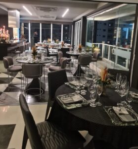 15/09/22 – Um espaço elegante, moderno e sofisticado, desenhado especialmente para clientes que apreciam a exclusividade e que desejam vivenciar as emoções e sensações transmitidas pela alta gastronomia, este é o novo conceito do Terrace Bistrô, o único rooftop de Balneário Camboriú. E quem assina o novo layout do espaço é o arquiteto Geovani Capelina. “Materiais, texturas e cores que transmitem sensações únicas e criam um palco para uma imersão a alta gastronomia, onde os visitantes podem contemplar a vista emoldurada do verdadeiro Skyline de Balneário Camboriú”, fala Capelina sobre sua inspiração para elaborar o projeto do bistr&ocir c;.