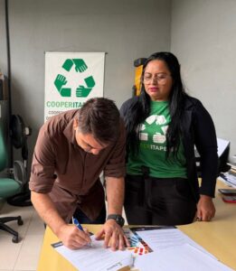 18/11/25 – A Prefeitura de Itapema firmou, nesta terça-feira (18), um convênio com a Cooperativa de Trabalho dos Catadores de Materiais Recicláveis de Itapema (Cooperitapema) para o repasse de R$ 60.901,00, em parcela única, destinado a concluir obras e promover melhorias nas condições físicas e materiais de trabalho da cooperativa. A assinatura ocorreu na sede da entidade.O investimento tem como objetivo reforçar a estrutura utilizada pelos cooperados, garantindo mais organização, eficiência e melhores condições para o trabalho diário de triagem e manejo dos recicláveis. A Cooperitapema desempenha um papel essencial na coleta, separação e destinação de materiais recicláveis, contribuindo diretamente para a sustentabilidade e para a preservação ambiental do município.
