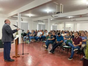 17/04/23 – A Secretaria de Saúde iniciou um novo ciclo de formação com os servidores. Os encontros buscam aprimorar os processos de trabalho e promover a reflexão da equipe. A primeira palestra com o tema “Amor ao Trabalho” aconteceu nesta segunda-feira (17/04) e reuniu mais de 400 profissionais de todos os setores da saúde.
