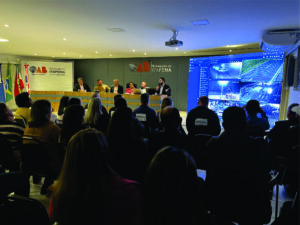 Durante a solenidade, o público pode conferir as funcionalidades do programa em tempo real. A apresentação foi realizada pelo representante da empresa, Caetano Gonçalves, que também tirou dúvidas do público presente.