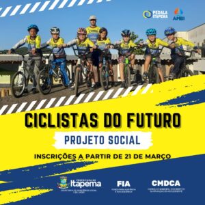 19/02/24 – A Pedala Itapema Associação de Ciclismo abrirá vagas para a Escolinha de BMX Racing do “Projeto Social Ciclistas do Futuro” no dia 21 de março. As vagas estão disponíveis para crianças (meninos e meninas) nascidas entre 2011 e 2019.
