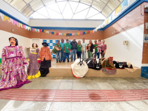 O Espaço Cultural recebeu nesta segunda-feira (06/06) a visita dos representantes do Instituto Federal Catarinense – campus Rio do Sul. Eles vieram conhecer de perto a tradição do Boi de Mamão, preservada em Itapema pelo grupo Raiz da Terra. O momento foi marcado por troca de experiências e claro muita cantoria e danças.