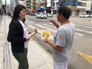 21/09/22 – A quarta-feira (21/09) foi com mais uma ação da Campanha Setembro Amarelo de prevenção ao suicídio . A equipe da saúde realizou uma blitz de orientação na Praça da Paz com a exposição de faixas, entrega de panfletos e uma conversa sobre a importância da vida com quem passou pelo local. A atividade foi na Avenida Nereu Ramos, próximo à rua 252, no Bairro Meia Praia.