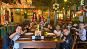 18/11/25 – As turminhas do G4 do CMEI Alto São Bento viveram uma experiência especial dentro da 5ª edição do projeto Pluralidade Cultural em Família, explorando as cores, sons e sabores do México. Nesta terça-feira (18), as crianças visitaram um restaurante mexicano em Balneário Camboriú, onde puderam experimentar pratos típicos e conhecer curiosidades da culinária. A visita marcou o encerramento do estudo sobre o país.Durante as semanas de preparação, os pequenos exploraram diferentes aspectos da cultura mexicana. Em sala de aula, conheceram paisagens como Chichén Itzá e a Praia de Cancún, aprenderam sobre os mariachis, seus instrumentos e músicas, além de se encantarem com as cores e emoções presentes nas obras de Frida Kahlo.