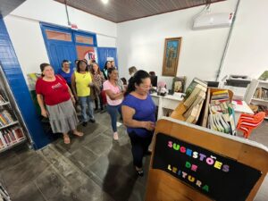 “É sempre bom receber pessoas aqui no nosso Espaço Cultural e hoje foi ainda mais especial com as mulheres do CRAS. Elas conversaram com a equipe, olharam os trabalhos realizados e até dançaram e cantaram com os professores” afirmou a Secretária de Cultura, Gabriela Nascimento.