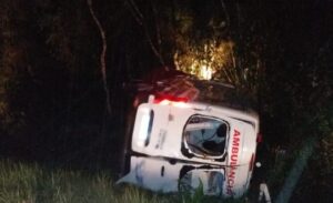 Uma ambulância bateu de frente contra uma van na BR-470, na altura de São Cristóvão do Sul, na madrugada desta terça-feira (12). Segundo o Corpo de Bombeiros Militar, a van teria saído da pista e atingido a Ambulância da Secretaria de Saúde de Correia Pinto.