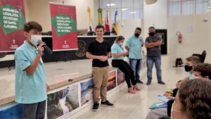 Começou na tarde desta quinta (24/02), o Seminário de Iniciação do Vereador Mirim, promovido pela Escola do Legislativo da Alesc (Assembleia Legislativa de SC), em parceria com o Núcleo de Educação para a Democracia. O Seminário faz parte da parceria entre a Câmara de Itapema e a Escola do Legislativo da Alesc, que presta suporte aos municípios na implantação do Parlamento Jovem.
